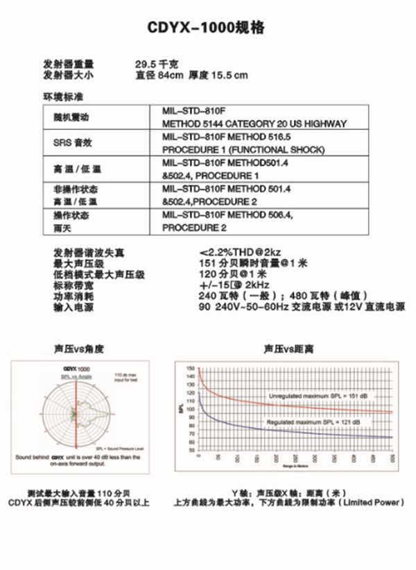 ▼CDYX-1000聲壓VS距離
