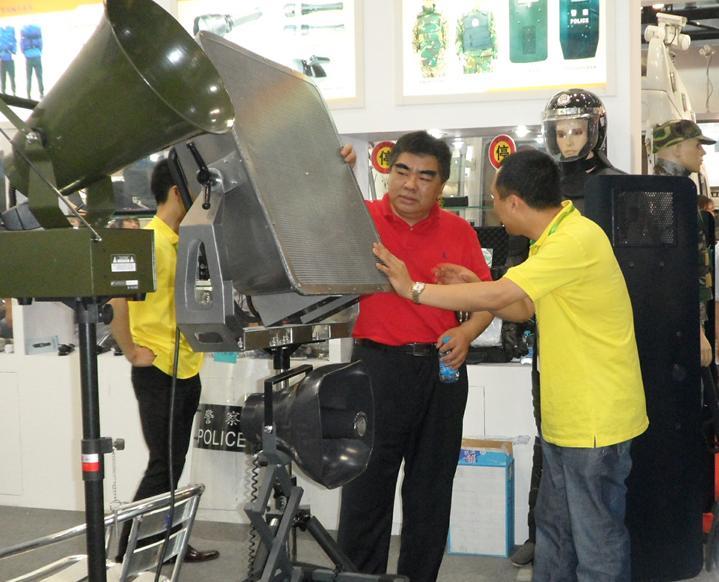 通過技術(shù)攻關(guān),驅(qū)散器產(chǎn)品再添新丁。CDYX-2000型遠距離聲波定向發(fā)射裝置,聲壓級達到160db以上,亮相北京2012年5月22日警用裝備展覽會備受與會者好評,本款產(chǎn)品突破了以前同類產(chǎn)品最大聲壓級只能達到153db的技術(shù)瓶頸,大大的提高了有效驅(qū)散距離,從而使驅(qū)散效果和操作人員安全系數(shù)大大提高。本次展會同時展出的盾牌型便攜式驅(qū)散器也是我司新近投產(chǎn)的一款單警維和驅(qū)散裝備,此款產(chǎn)品以使用靈活,攜帶輕便為特色,受到一線警員熱情歡迎。